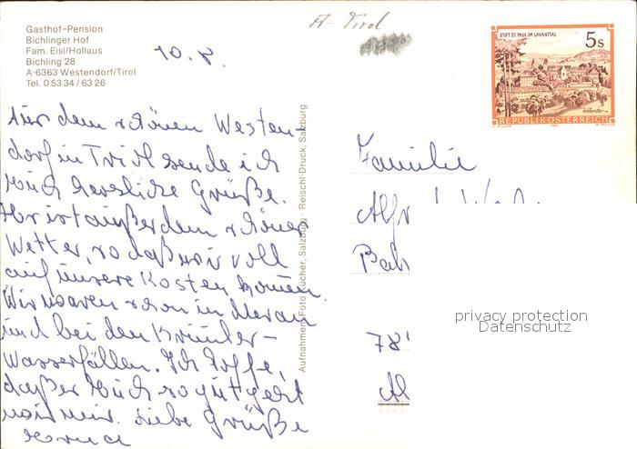 71812693 Westendorf Tirol Gasthof Pension Bichlinger Hof Gaststube Empfang postalisch nicht gelaufen Erhaltung siehe scans KatCode: 11390335070420