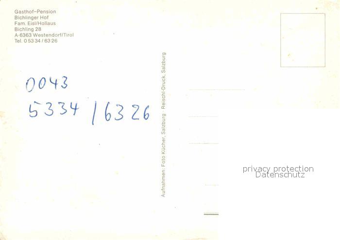 12757693 Westendorf Tirol Gasthof Pension Bichlinger Hof postalisch nicht gelaufen Erhaltung siehe scans [AndreD76] KatCode: 11390335070420