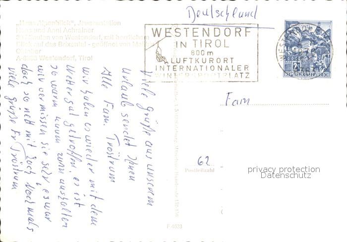 42923836 alte Postkarte Westendorf Tirol Haus Alpenblick postalisch gelaufen Erhaltung siehe scans [WerneD48] KatCode: 11390335070420