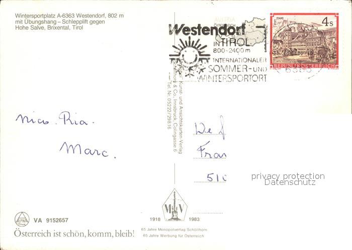 72452032 alte Postkarte Westendorf Tirol Hohe Salve postalisch gelaufen Erhaltung siehe scans KatCode: 11390335070420