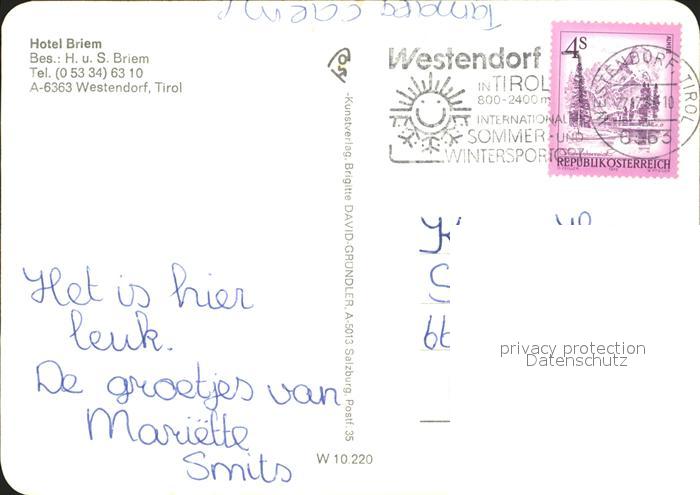 72092216 alte Postkarte Westendorf Tirol Hotel Brehm Ortsblick Panorama postalisch gelaufen Erhaltung siehe scans KatCode: 11390335070420