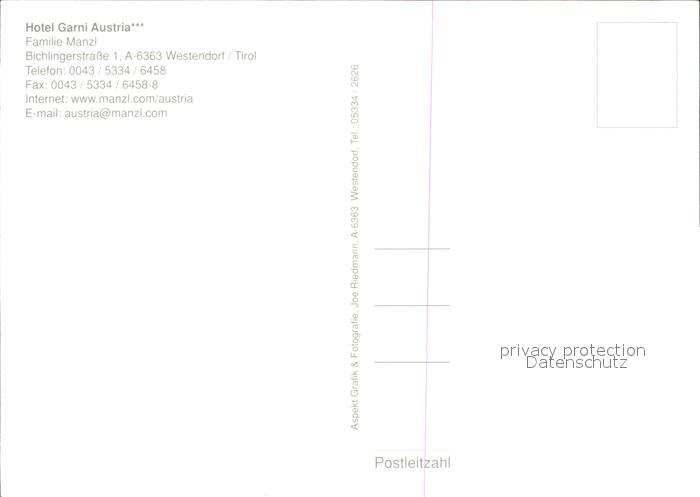 72568555 Westendorf Tirol Hotel Garni Austria postalisch nicht gelaufen Erhaltung siehe scans [KathaD79] KatCode: 11390335070420