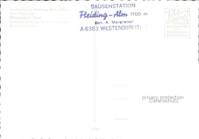 72261180 Westendorf Tirol Jausenstation Fleiding- Alm postalisch nicht gelaufen Erhaltung siehe scans KatCode: 11390335070420