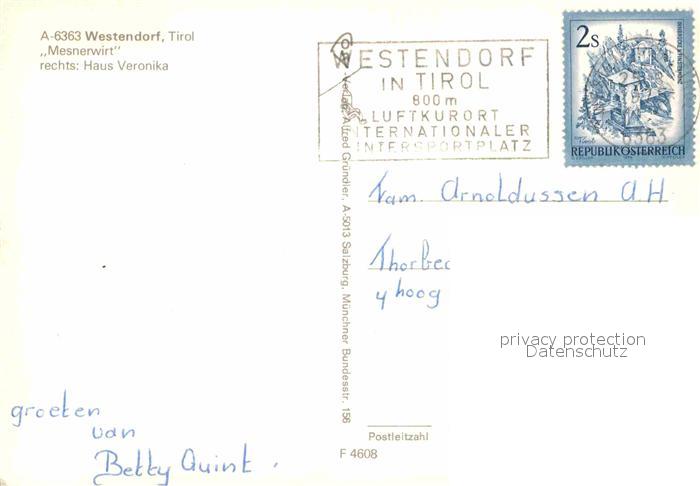 72761857 alte Postkarte Westendorf Tirol Mesnerwirt Haus Veronika postalisch gelaufen Erhaltung siehe scans [LiesaD40] KatCode: 11390335070420