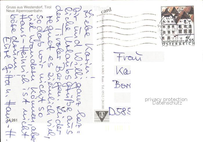71908874 alte Postkarte Westendorf Tirol Neue Alpenrosenbahn postalisch gelaufen Erhaltung siehe scans KatCode: 11390335070420