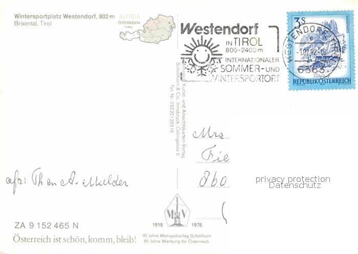 72862022 alte Postkarte Westendorf Tirol Ortsmotiv postalisch gelaufen Erhaltung siehe scans [WerneD78] KatCode: 11390335070420