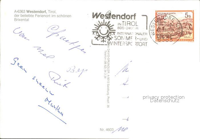 72094907 alte Postkarte Westendorf Tirol Panorama Kirche Pferdesport Viehtrieb Schwimmbad Statue postalisch gelaufen Erhaltung siehe scans KatCode: 11390335070420