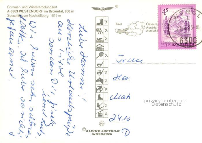 73512109 alte Postkarte Westendorf Tirol Panorama Sessellift Nachsoellberg postalisch gelaufen Erhaltung siehe scans [KathaD81] KatCode: 11390335070420