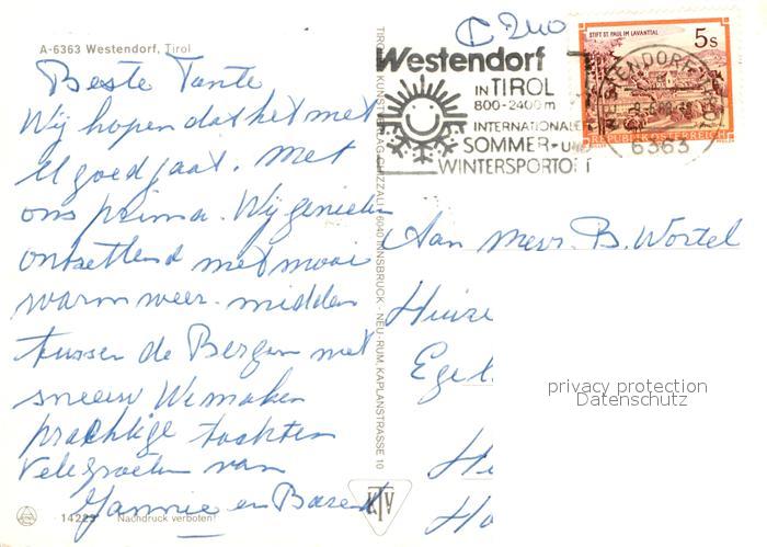 72997203 alte Postkarte Westendorf Tirol Panorama postalisch gelaufen Erhaltung siehe scans [WerneD78] KatCode: 11390335070420