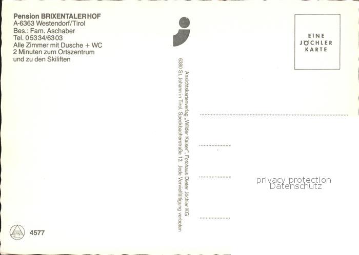 72501133 Westendorf Tirol Pension Brixentalerhof postalisch nicht gelaufen Erhaltung siehe scans KatCode: 11390335070420