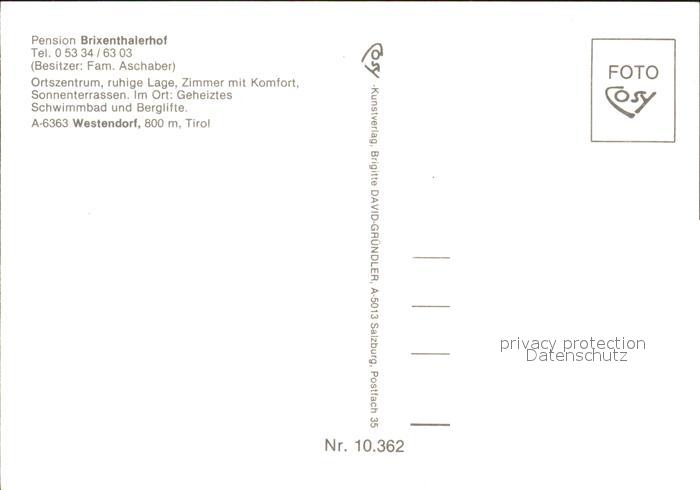 71860032 Westendorf Tirol Pension Brixenthalerhof postalisch nicht gelaufen Erhaltung siehe scans KatCode: 11390335070420