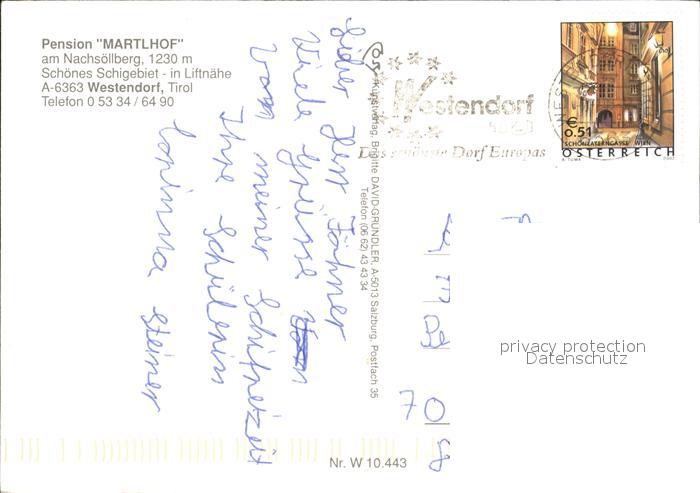72447125 alte Postkarte Westendorf Tirol Pension Martlhof am Nachsoellberg Schigebiet Winterpanorama postalisch gelaufen Erhaltung siehe scans KatCode: 11390335070420