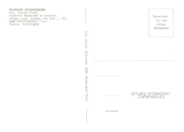 73591042 Westendorf Tirol Pension Schneeberg postalisch nicht gelaufen Erhaltung siehe scans [KathaD81] KatCode: 11390335070420