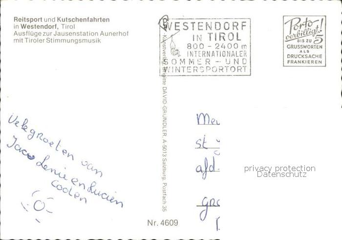 72093097 Westendorf Tirol Reitsport Kutschenfahrten Jausenstation Aunerhof Harfenspieler postalisch nicht gelaufen Erhaltung siehe scans KatCode: 11390335070420