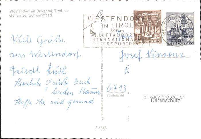 72294587 alte Postkarte Westendorf Tirol Schwimmbad postalisch gelaufen Erhaltung siehe scans KatCode: 11390335070420