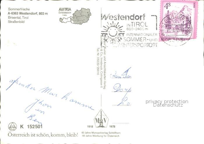 71708962 alte Postkarte Westendorf Tirol Strassenbild Kirche Gasthof postalisch gelaufen Erhaltung siehe scans KatCode: 11390335070420
