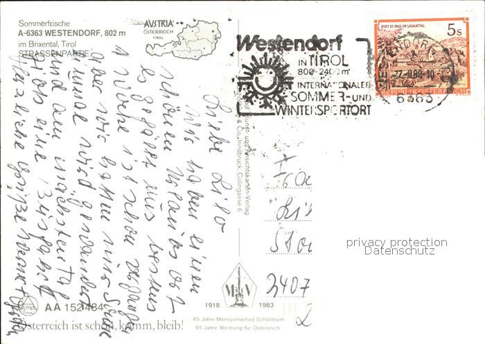 72478933 alte Postkarte Westendorf Tirol Strassenpartie Kirche postalisch gelaufen Erhaltung siehe scans KatCode: 11390335070420
