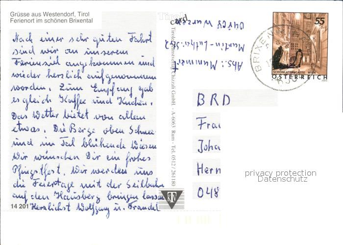 72528318 alte Postkarte Westendorf Tirol Teilansichten Feriendorf im Brixental Schwimmbad Bergbahn Gleitschirmfliegen postalisch gelaufen Erhaltung siehe scans KatCode: 11390335070420