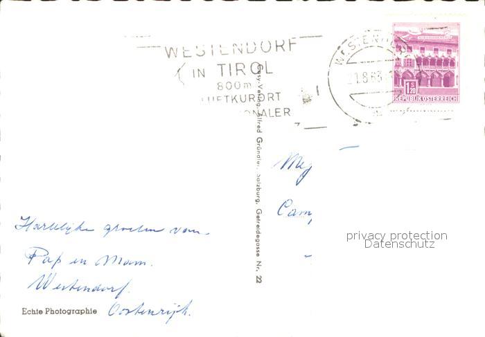 71812487 alte Postkarte Westendorf Tirol Totalansicht Dorfpartie mit Kirche Seilbahn postalisch gelaufen Erhaltung siehe scans KatCode: 11390335070420