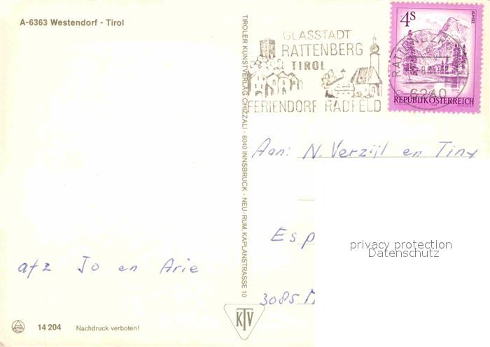 72883424 alte Postkarte Westendorf Tirol postalisch gelaufen Erhaltung siehe scans [LiesaD40] KatCode: 11390335070420
