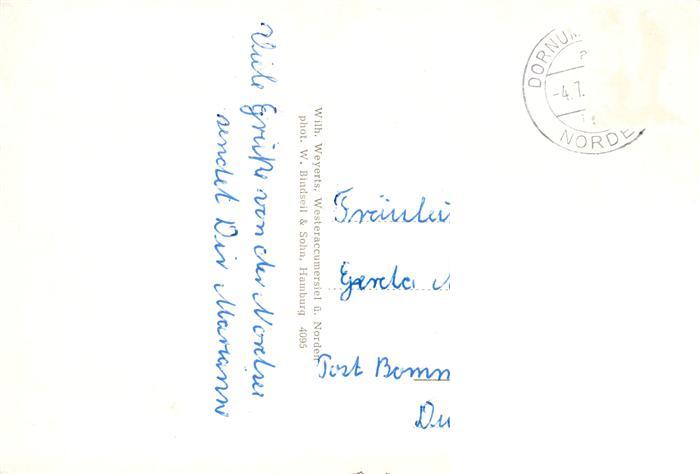 73886131 alte Postkarte Westeraccumersiel Dornum Fischerhafen Fischkutter Partie an Kanal Dorfansicht postalisch gelaufen Erhaltung siehe scans [FriedD77] KatCode: 11110003452027