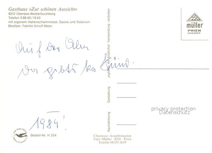 72961818 Westerbuchberg Gasthaus Zur schoenen Aussicht Hochplatte postalisch nicht gelaufen Erhaltung siehe scans [NatalD47] KatCode: 11110009189159