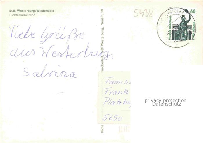 74041046 alte Postkarte Westerburg Westerwald Rheinland-Pfalz Liebfrauenkirche postalisch gelaufen Erhaltung siehe scans [WerneD78] KatCode: 11110007143308