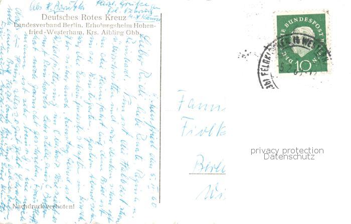 73858943 alte Postkarte Westerham Bad Aibling DRK Landesverband Berlin Erholungsheim Hohenfried postalisch gelaufen Erhaltung siehe scans [WerneD78] KatCode: 11110009187117