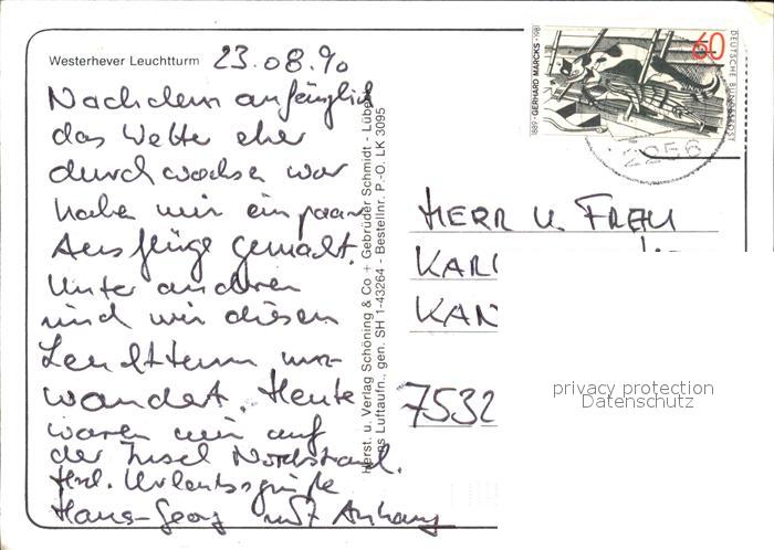72576898 alte Postkarte Westerhever Fliegeraufnahme mit Leuchtturm und Strand postalisch gelaufen Erhaltung siehe scans [LiesaD40] KatCode: 11110001054150