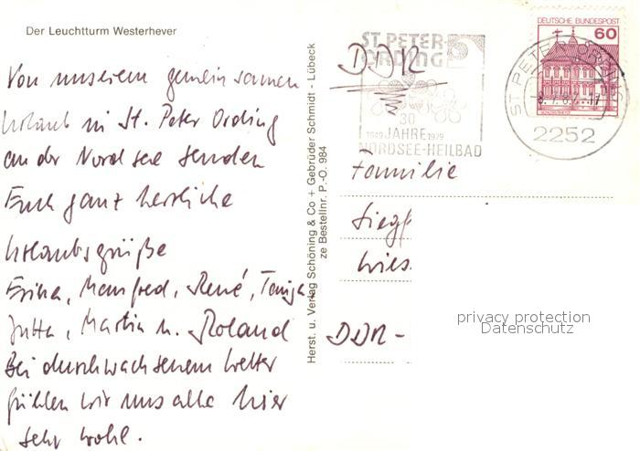 73084292 alte Postkarte Westerhever Leuchtturm postalisch gelaufen Erhaltung siehe scans [KathaD81] KatCode: 11110001054150