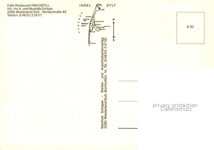 73615846 Westerland Sylt Cafe Restaurant Waldidyll Gastraeume postalisch nicht gelaufen Erhaltung siehe scans [WerneD78] KatCode: 11110001054151