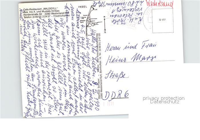 72582505 alte Postkarte Westerland Sylt Cafe Restaurant Waldidyll postalisch gelaufen Erhaltung siehe scans [FriedD77] KatCode: 11110001054151