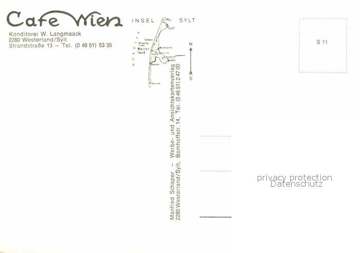 72631271 Westerland Sylt Cafe Wien postalisch nicht gelaufen Erhaltung siehe scans [LiesaD40] KatCode: 11110001054151