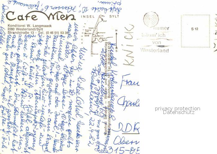 72631295 alte Postkarte Westerland Sylt Cafe Wien postalisch gelaufen Erhaltung siehe scans [LiesaD40] KatCode: 11110001054151
