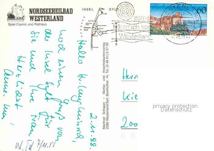 72771361 alte Postkarte Westerland Sylt Casino Rathaus postalisch gelaufen Erhaltung siehe scans [AndreD76] KatCode: 11110001054151