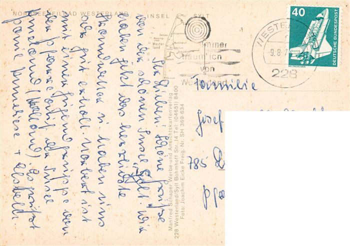 73885913 alte Postkarte Westerland Sylt Fliegeraufnahme postalisch gelaufen Erhaltung siehe scans [WerneD78] KatCode: 11110001054151