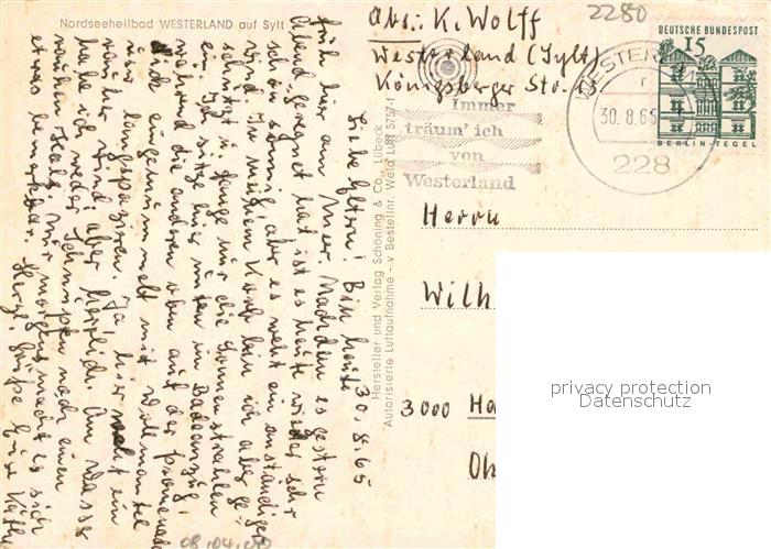 72901026 alte Postkarte Westerland Sylt Fliegeraufnahme postalisch gelaufen Erhaltung siehe scans [WerneD78] KatCode: 11110001054151