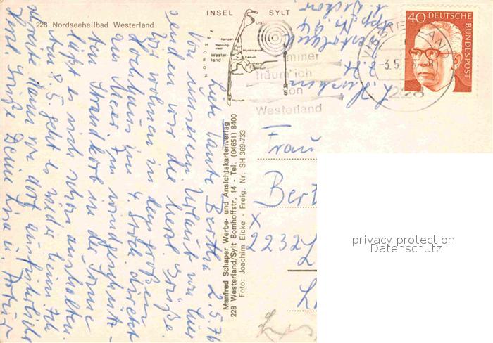 72836432 alte Postkarte Westerland Sylt Fliegeraufnahme postalisch gelaufen Erhaltung siehe scans [PaolaD17] KatCode: 11110001054151