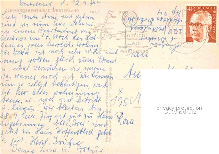 72836428 alte Postkarte Westerland Sylt Fliegeraufnahme postalisch gelaufen Erhaltung siehe scans [PaolaD17] KatCode: 11110001054151