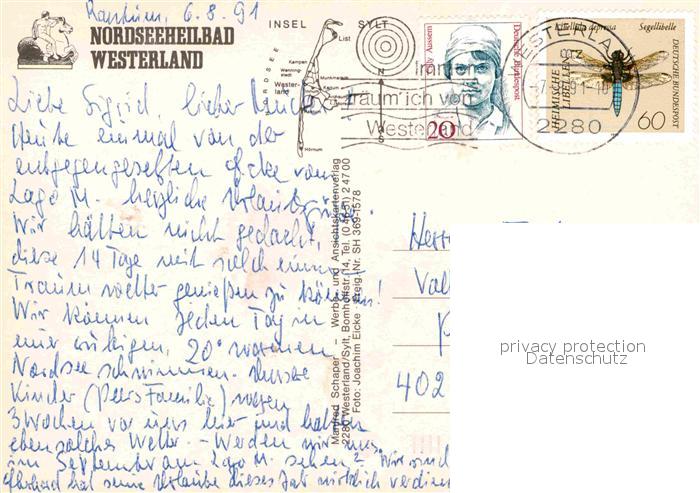 72782896 alte Postkarte Westerland Sylt Fliegeraufnahme postalisch gelaufen Erhaltung siehe scans [WerneD78] KatCode: 11110001054151