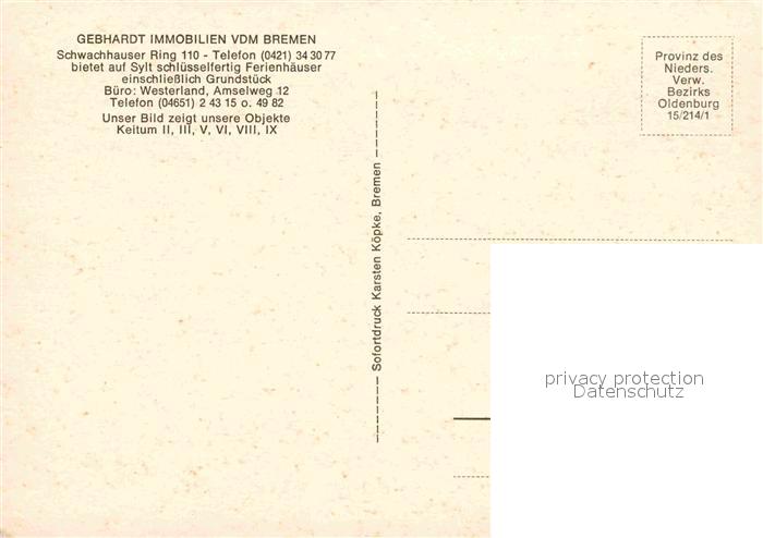72692904 Westerland Sylt Fliegeraufnahme postalisch nicht gelaufen Erhaltung siehe scans [FriedD77] KatCode: 11110001054151