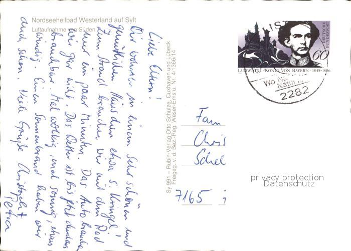 72308325 alte Postkarte Westerland Sylt Fliegeraufnahme postalisch gelaufen Erhaltung siehe scans KatCode: 11110001054151