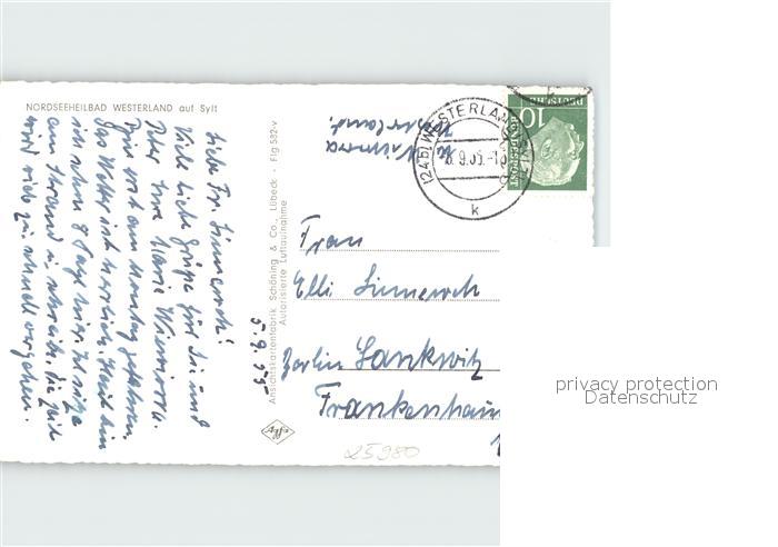 32360178 alte Postkarte Westerland Sylt Fliegeraufnahme postalisch gelaufen Erhaltung siehe scans KatCode: 11110001054151