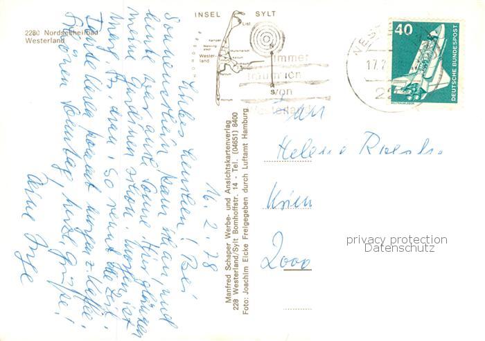 73766924 alte Postkarte Westerland Sylt Fliegeraufnahme postalisch gelaufen Erhaltung siehe scans [FriedD77] KatCode: 11110001054151