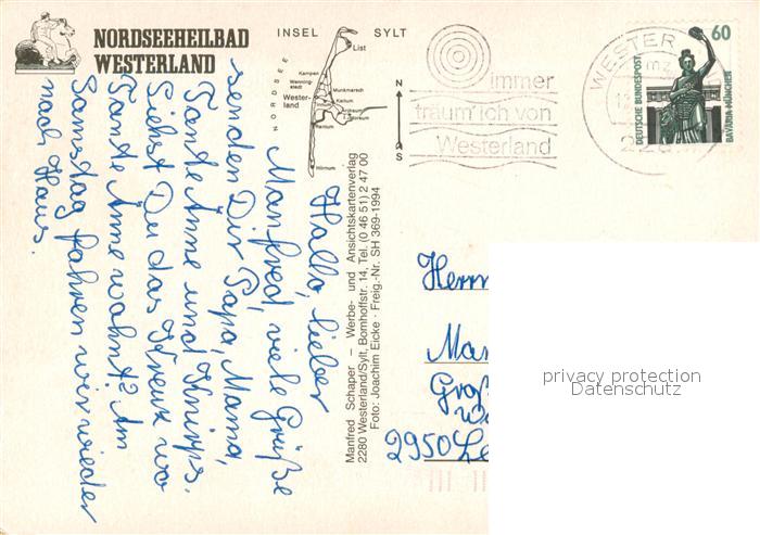 73711842 alte Postkarte Westerland Sylt Fliegeraufnahme postalisch gelaufen Erhaltung siehe scans [WerneD78] KatCode: 11110001054151