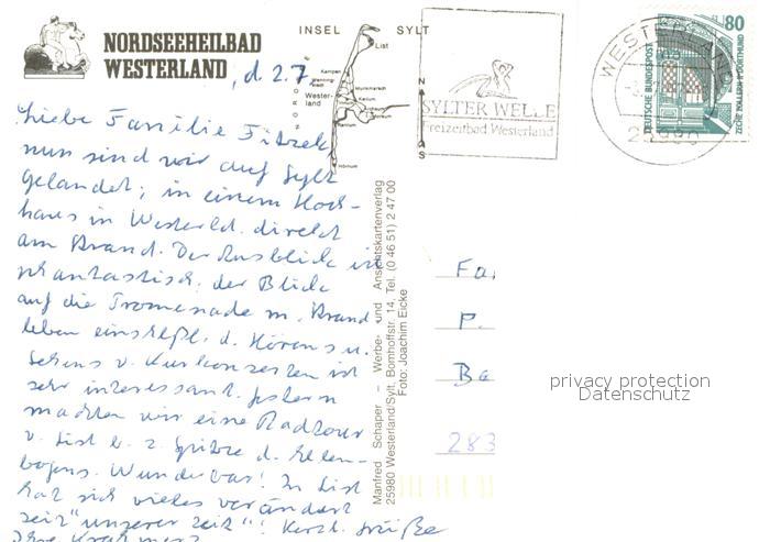 73661625 alte Postkarte Westerland Sylt Fliegeraufnahme postalisch gelaufen Erhaltung siehe scans [WerneD78] KatCode: 11110001054151