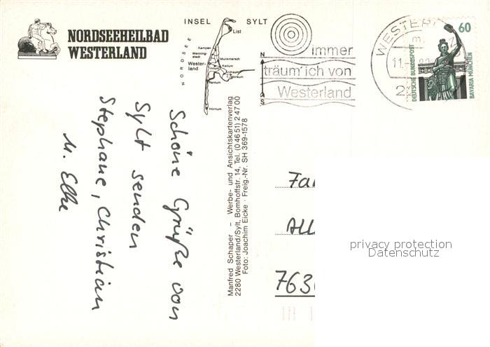 73542078 alte Postkarte Westerland Sylt Fliegeraufnahme postalisch gelaufen Erhaltung siehe scans [WerneD78] KatCode: 11110001054151