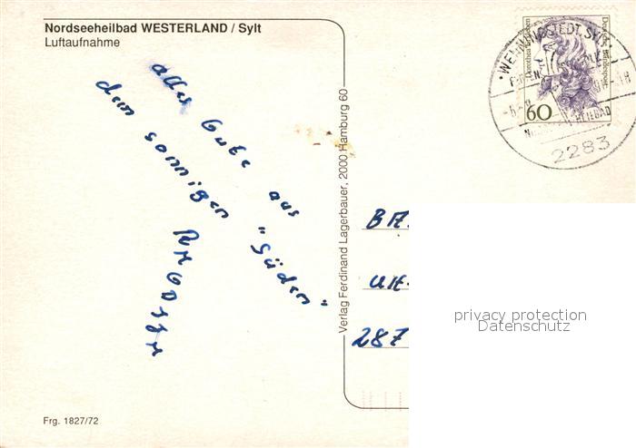 73131449 alte Postkarte Westerland Sylt Fliegeraufnahme postalisch gelaufen Erhaltung siehe scans [NatalD47] KatCode: 11110001054151