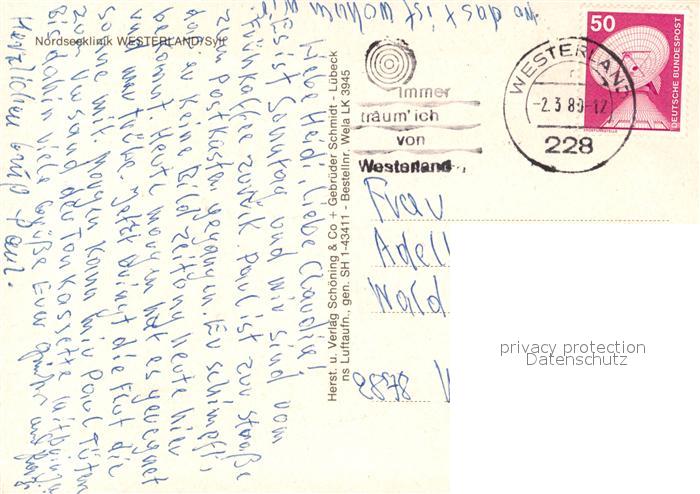 73108999 alte Postkarte Westerland Sylt Fliegeraufnahme postalisch gelaufen Erhaltung siehe scans [NatalD47] KatCode: 11110001054151