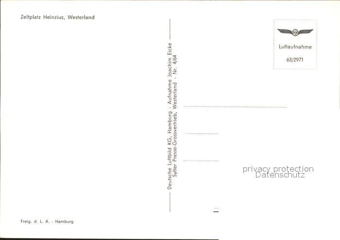 71992101 Westerland Sylt Fliegeraufnahme Camping postalisch nicht gelaufen Erhaltung siehe scans KatCode: 11110001054151